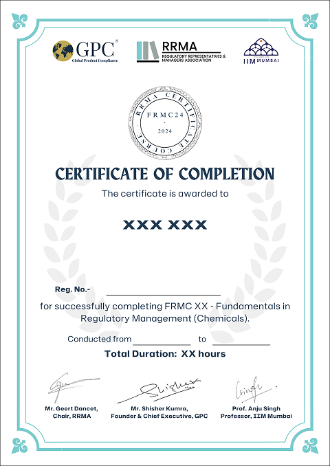 A course developed and taught by Regulatory Representatives and Managers Association (RRMA), Global Product Compliance (GPC), and Indian Institute of Management, Mumbai (IIM).